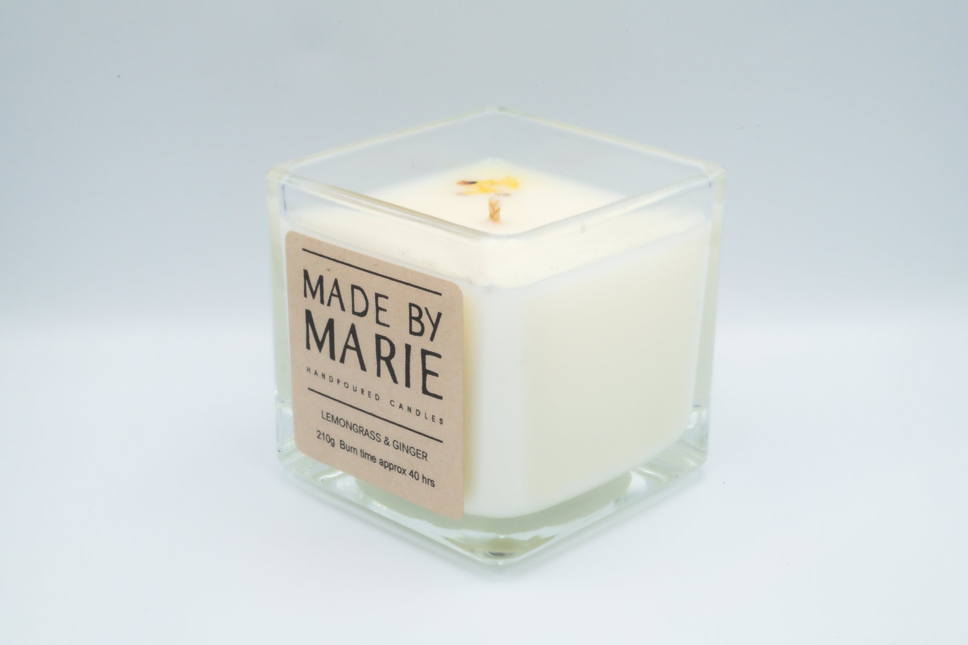 Lemongrass & Ginger candle that blends beautifully to fill your room with the bright, zesty notes of lemongrass offering refreshing brightness and the warm, spicy hints of ginger adding richness. Together, they create a feeling of renewal, combining fresh energy with a soothing warmth.